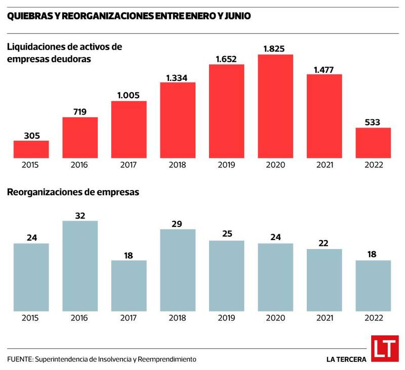 Quiebras de empresas en primer semestre de 2022 caen a su nivel más bajo en siete años