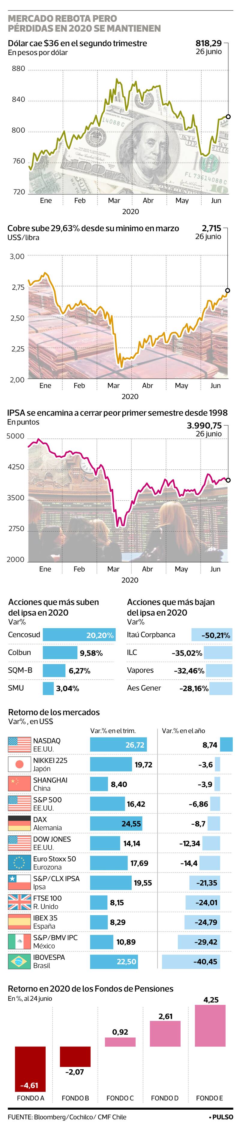 Sin embargo, las malas noticias vienen del balance de la primera mitad del año: el IPSA suma una una caída de 14%, mayor descenso semestral desde diciembre de 2008, tras la quiebra de Lehman Brothers. Además, se trata del peor primer semestre desde 1998. (Ver infografía)