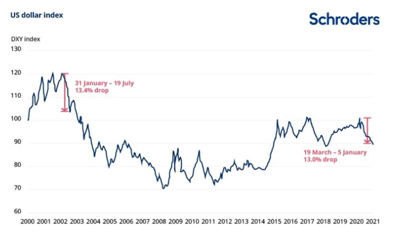 El dólar ha recuperado terreno en el inicio de año luego de la fuerte caída apuntada en 2020, lo cual mantiene en el alerta al mercado respecto al rumbo que podría tomar la divisa norteamericana. En esa línea, Schroders sostiene que el reciente rebote no debiera confundirse con un cambio en la tendencia.