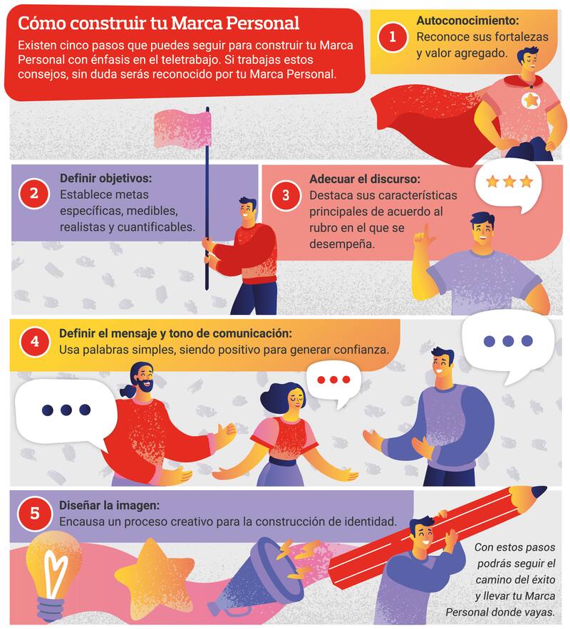 Pero, ¿a qué nos referimos con Marca Personal? Para explicarlo claramente, imaginemos que estás desde marzo en modalidad teletrabajo como vendedor en una empresa. Dado el cambio de modalidad, han surgido complicaciones relacionadas a la vida cotidiana y estás preocupado por que tus jefaturas no vean tus habilidades trabajando remotamente.