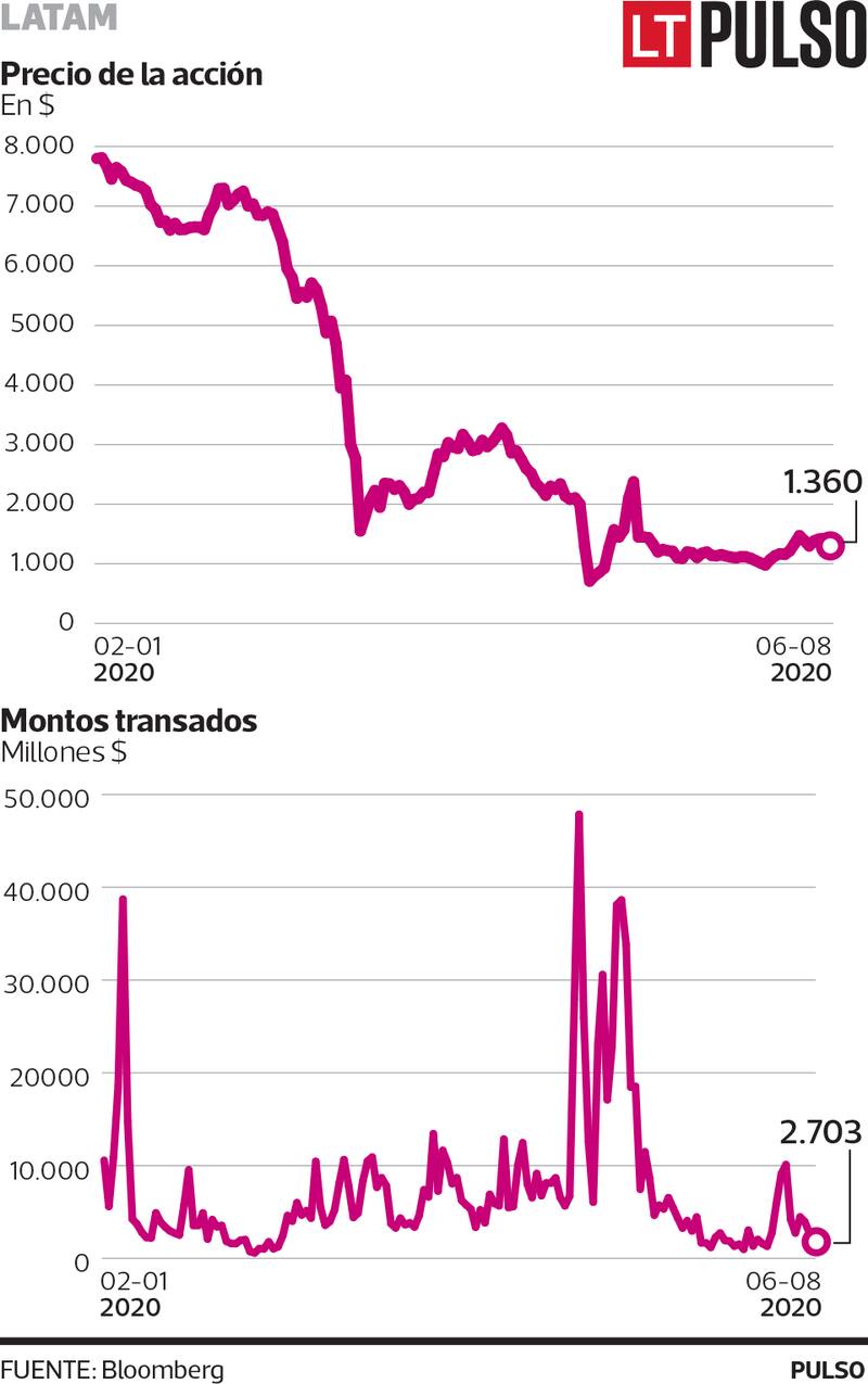 Previo al inicio de las crisis por coronavirus, el promedio de los montos transados de Latam en la Bolsa de Santiago se ubicaba en $1.034 millones. (Ver infografía)