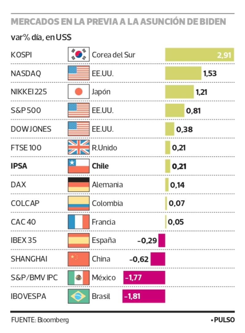 Los mercados por el momento reciben con entusiasmo el cambio de mando que se concreta este miércoles, gracias al prometedor paquete de estímulos que propondría la nueva administración.