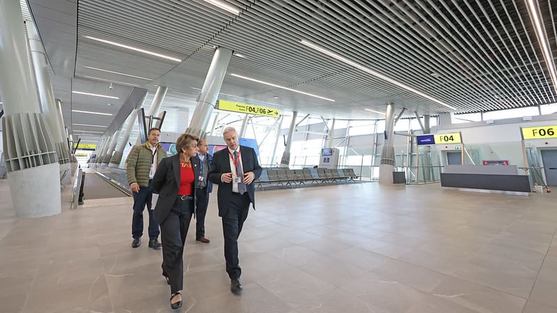 “Seguimos con obras en el aeropuerto Arturo Merino Benítez que se están en desarrollo desde el año 2023 y estarán hasta el año 2025. Son las obras que van a permitir disponer de un terminal completamente remodelado y con nuevas áreas para acoger hasta un máximo de 20 millones de pasajeros en un mediano plazo”, precisó la secretaria de Estado.