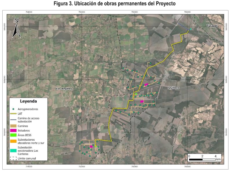 Ante este contexto, las partes y obras del proyecto se emplazarán en la comuna de Quilleco y Los Ángeles, Región del Biobío, y también se considera el transporte de insumos por vías públicas que atraviesan las comunas de Quilleco; Los Ángeles, Tucapel; Cabrero y Yungay, esta última perteneciente a la provincia de Diguillín, región del Ñuble.