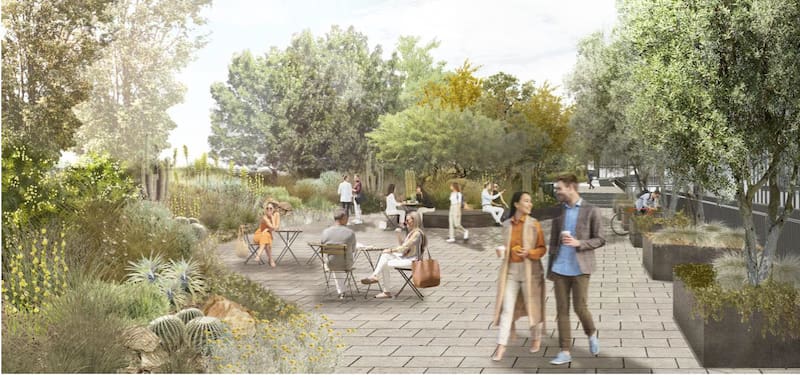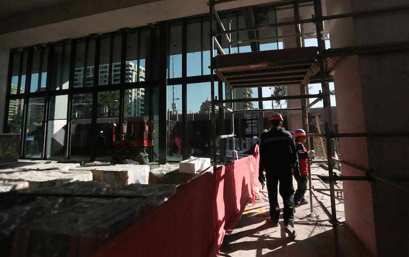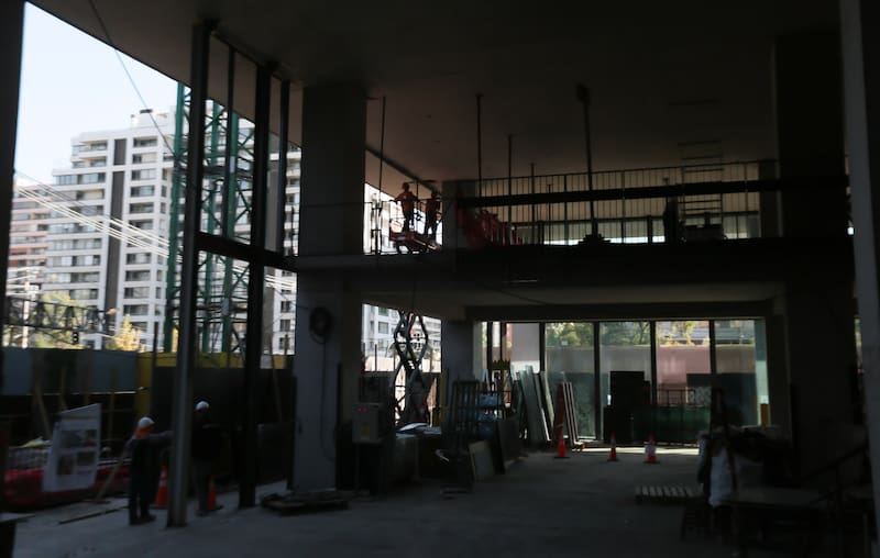 Hoy solo hay cemento y trabajadores de la construcción que pronto llegarán a un peak de 1.500 personas en la obra. Pero cuando concluya, el proyecto estará repleto de vegetación. Jadue y Livingston es la firma paisajista a cargo.