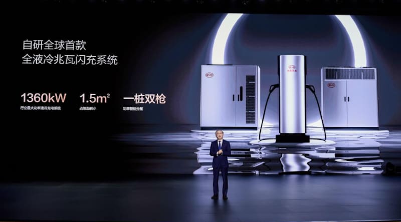 “Nuestro objetivo es lograr que el tiempo de carga de los vehículos eléctricos sea tan corto como el de los de combustión”, declaró Wang Chuanfu en la presentación del dispositivo, el lunes.