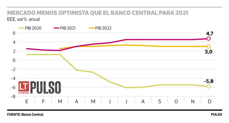 En tanto, la Encuesta de Expectativas Económicas proyectó un PIB de 4,7% para el próximo año menor al rango del BC de entre 5,5% y 6,5%.