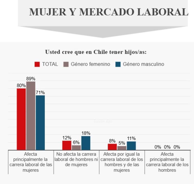 Algunas de las conclusiones más relevantes del estudio están en la sección en que se consulta por el impacto de tener hijos en el desarrollo profesional.