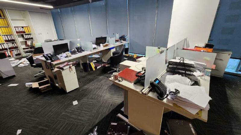 Las oficinas en las que se realizó la diligencia estaban sin suministro eléctrico, dado que la propiedad tiene una deuda importante de gastos comunes.