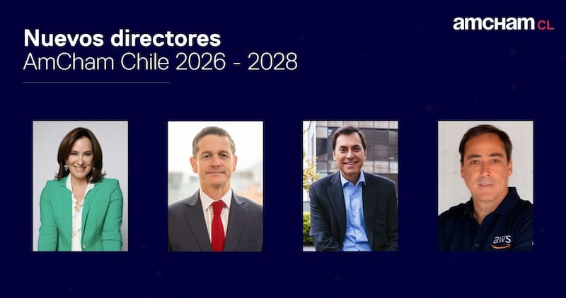 La Cámara Chilena Norteamericana de Comercio (AmCham) anunció este martes, a través de un comunicado, la elección de cuatro nuevos integrantes para el periodo 2026–2028, en un proceso que alcanzó una participación histórica del 84%.