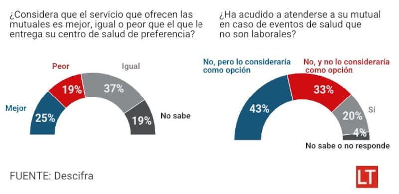 Es más, un 20% de los afiliados indica que ha acudido a atenderse a su mutual en caso de eventos de salud que no son laborales; mientras que un 43% no ha acudido, pero lo consideraría como opción. En tanto, uno de cada tres encuestados (33%) no ha acudido y no lo consideraría como opción.