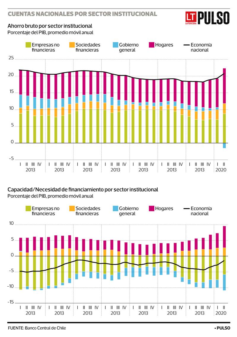 Estos resultados en el ingreso disponible, junto a una reducción del consumo final efectivo de 16,6%, determinaron que la tasa de ahorro del sector se elevara a 16% del ingreso disponible.