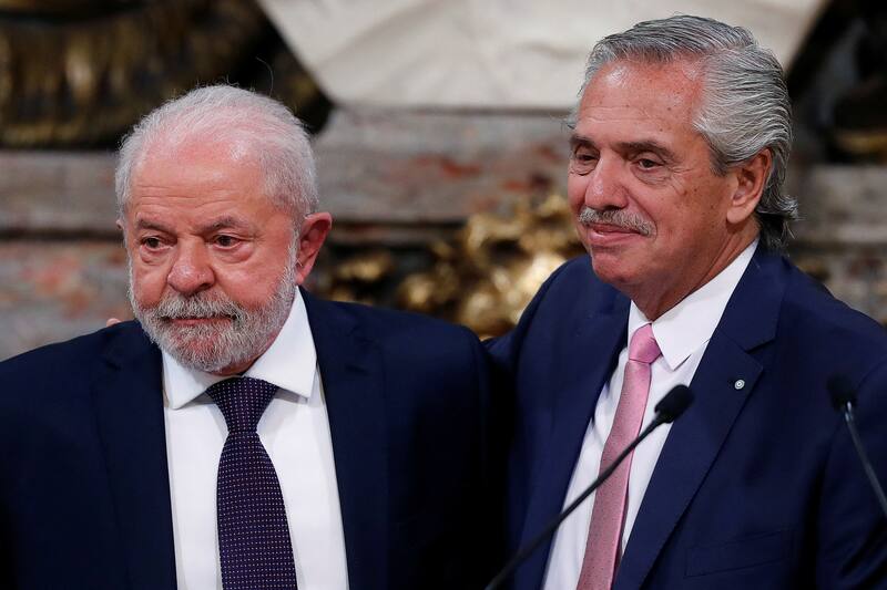 “Queremos que cada ministro de Economía con su equipo puedan hacernos una propuesta de comercio exterior y transacciones entre los dos países que se haga en una moneda común, que se construya después de mucho debate y reuniones”, dijo el mandatario brasileño Luiz Inácio Lula Da Silva a periodistas luego de reunirse este lunes con su colega Alberto Fernández.