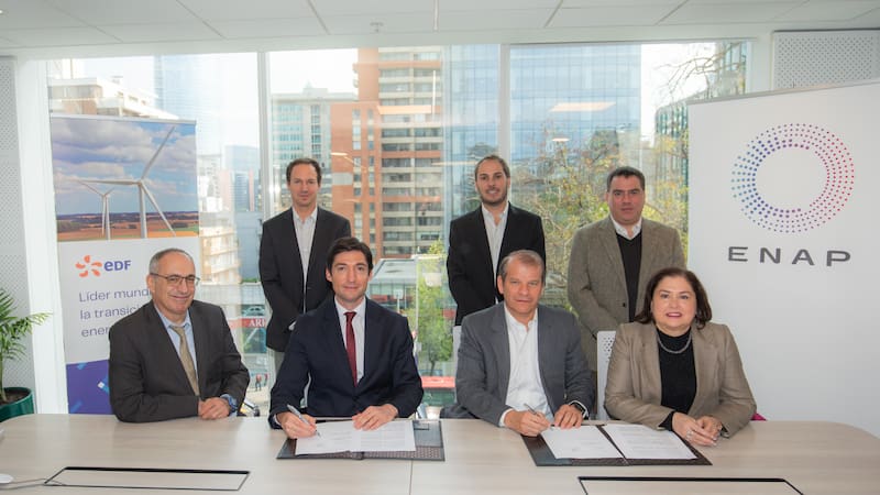 La estatal chilena y la filial de la compañía francesa iniciarán los estudios que permitirán evaluar la utilización de las instalaciones de Enap con el fin de posibilitar la exportación de hasta 400 mil toneladas anuales de amoníaco verde, entre otros productos derivados del hidrógeno verde, asociados a los proyectos que EDF desarrolla en la región.