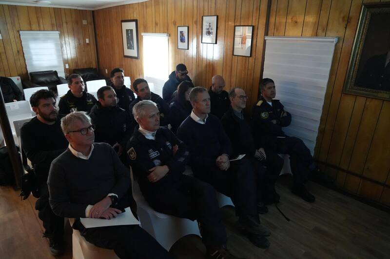 En la zona se encontraban el ministro de Transportes y Telecomunicaciones, Juan Carlos Muñoz y el subsecretario de Fuerzas Armadas, Galo Eidelstein, quienes aprovecharon la instancia para realizar una videollamada con la ministra del Interior Carolina Tohá, y la ministra de Defensa, y Maya Fernández.
