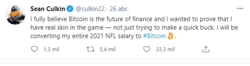 A medida que el valor del Bitcoin subía, esta tendencia sumaba más y más adeptos. A principios de febrero de 2021 el alcalde de Miami, Francis Suárez, expresó públicamente su idea de pagar remuneraciones a los trabajadores públicos en esta moneda. Y en abril de 2021, el jugador de la Liga Nacional de Fútbol Americano (NFL), Sean Culkin, dijo que convertiría todo su sueldo en Bitcoin confiado, tal como señaló en su cuenta de Twitter, en que esta moneda “es el futuro de las finanzas”.