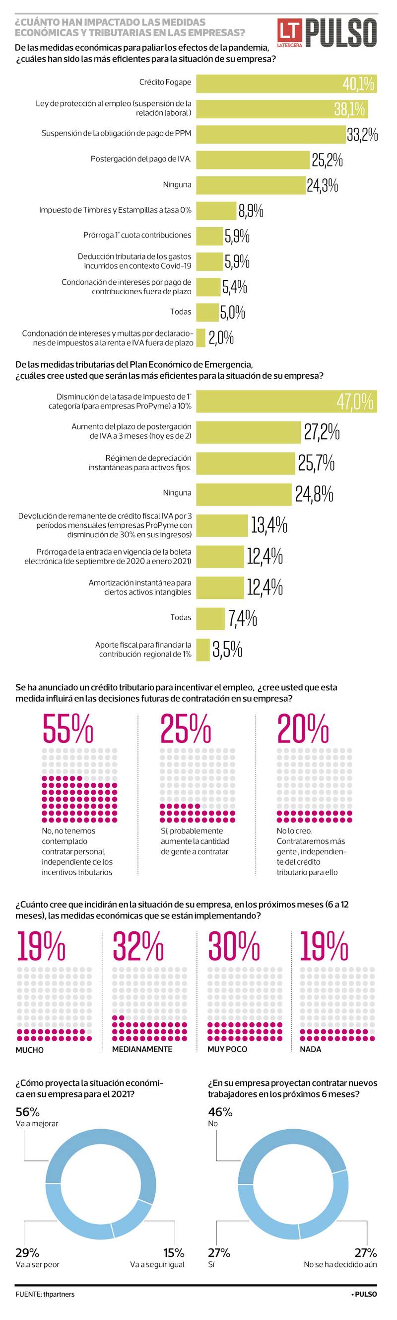 El gobierno aplicó una serie de medidas para paliar los efectos de la crisis económica provocada por el Covid-19. Para evaluar su impacto TH Partners, empresa de asesoría tributaria, financiera y legal, realizó un sondeo a 205 empresas de distintos tamaños, con el fin de conocer su percepción acerca de cuáles han sido o podrían ser las medidas más eficientes, y también sus expectativas de crecimiento y empleo en el mediano plazo.