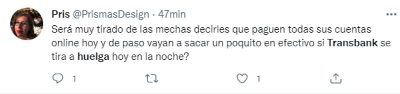 Durante este miércoles Transbank agregó en su cuenta de Twittter que “frente a la paralización que ha hecho efectiva el sindicato, mantenemos el compromiso de dar continuidad a la cadena de pagos para compras, ventas y abonos a comercios con tarjetas de crédito, débito y prepago”.