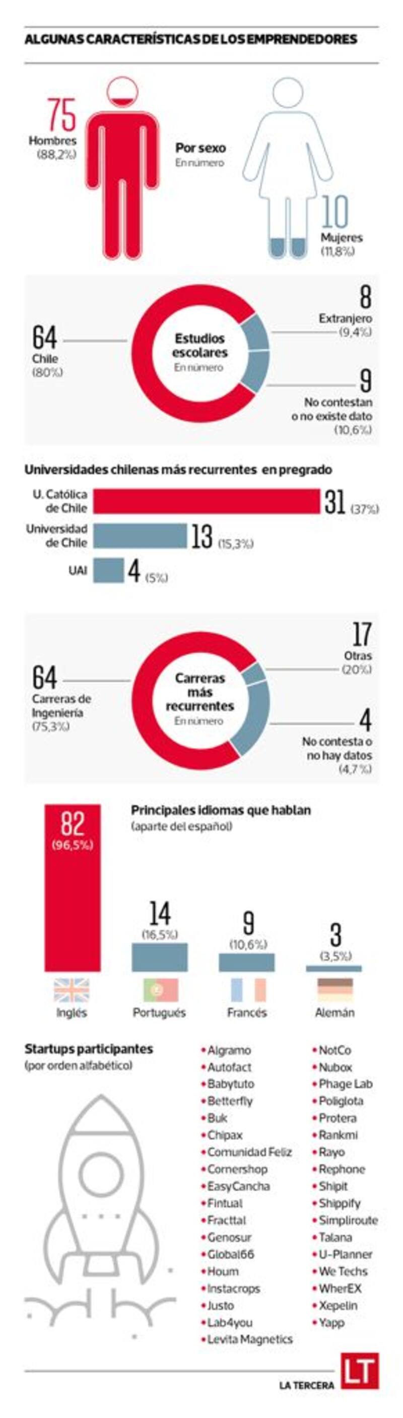 “De lo que me he podido dar cuenta es que la mayoría son personas que han trabajado algunos años antes en empresas grandes y luego montaron su emprendimiento. Se da muy poco que salgan de la universidad y armen de inmediato su startup”, señala Barahona, quien además lideró por ocho años Wayra Chile , la aceleradora de startups de Movistar.