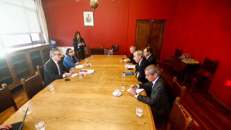 El ministro de Hacienda, Mario Marcel, junto a la directora de Presupuestos (Dipres), Javiera Martínez, se reunieron en Teatinos 120 con Ricardo Mewes, presidente de la CPC, y Fernando Alvear, gerente general del gremio. También asistieron el vicepresidente de la Sofofa, Óscar Hasbún y el economista y asesor de la CPC, Patricio Rojas.