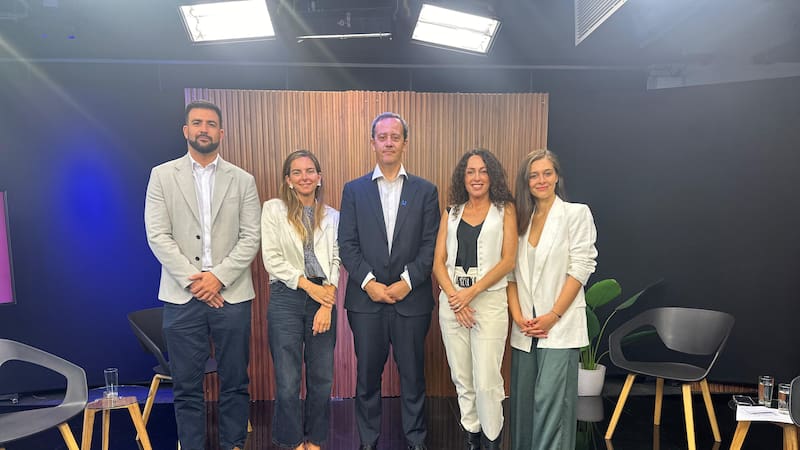 Cristian Buc, Research Head de CENIA y Managing Partner de Blueprint AI, Cristóbal Huneeus, Socio y Director de Data Science de Unholster y Teresita Morán, Country Manager de Buk, en conversación con Francisca Jünemann, Presidenta Ejecutiva de ChileMujeres, y Bárbara Pezoa, editora de Hubs de La Tercera, compartieron su visión sobre cómo la IA debe reducir la brecha de género en sus herramientas de uso pero además ayudar a superar barreras en los rubros de estudio, como la ciencia e innovación.