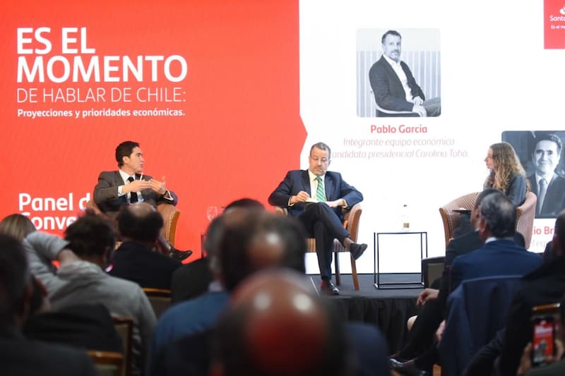 El exministro de Hacienda, Ignacio Briones, y el exvicepresidente dele Banco Central, Pablo García, participaron en el seminario “Es el momento de hablar de Chile”, organizado por Santander.