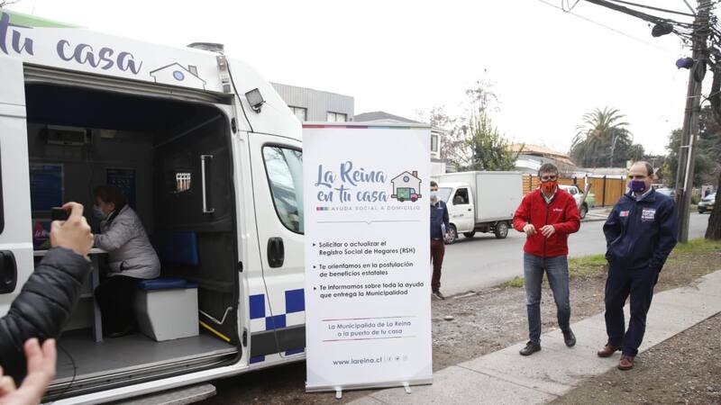 El ministro Cristián Monckeberg llegó hasta la comuna de La Reina y acompañado por el alcalde José Manuel Palacios, visitaron a los vecinos en un móvil que lleva ayuda social a domicilio. La implementación comunal tiene por objeto que asistentes sociales apoyen en la postulación de beneficios a quienes no pueden hacerlo a través de la web.