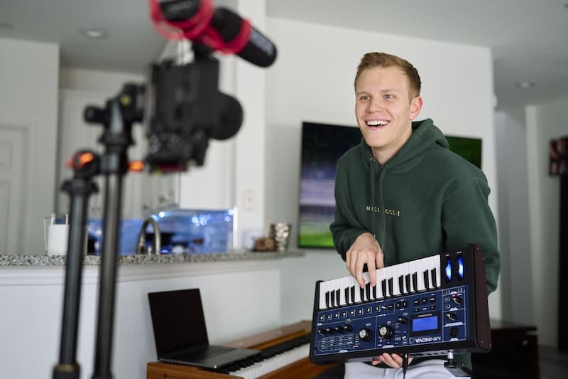 Landen Purifoy, un creador de 22 años de Plano (Texas), hace videos para TikTok y otras plataformas, sobre todo con un dispositivo llamado talk box para hacer sonidos y música divertidos. Muchas de sus publicaciones obtienen más de un millón de visitas en TikTok.