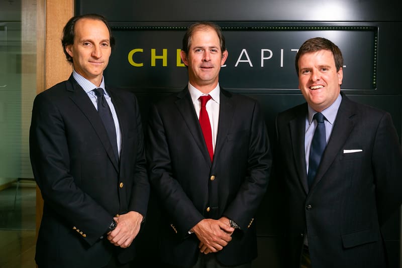 Corbo, Hurtado y Larraín tienen el mismo cargo en CHL -fundador y portfolio manager-, pero se distribuyen responsabilidades: Corbo se encarga de las posiciones en el mercado de capitales; Larraín, de los vehículos de deuda privada, y Hurtado, de lo inmobiliario.