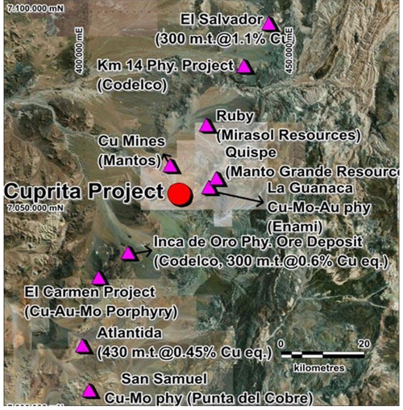 “Ubicado en el Cinturón de Pórfidos de Cobre del Paleoceno, un área altamente prospectiva en el norte de Chile. Esta propiedad de 1.000 hectáreas se encuentra entre dos importantes sistemas cupríferos —El Salvador e Inca de Oro— en una región que alberga varios yacimientos de clase mundial y se beneficia de un excelente acceso a infraestructura, como carreteras, energía, puertos y centros de apoyo minero cercanos", destacó la firma en un comunicado.