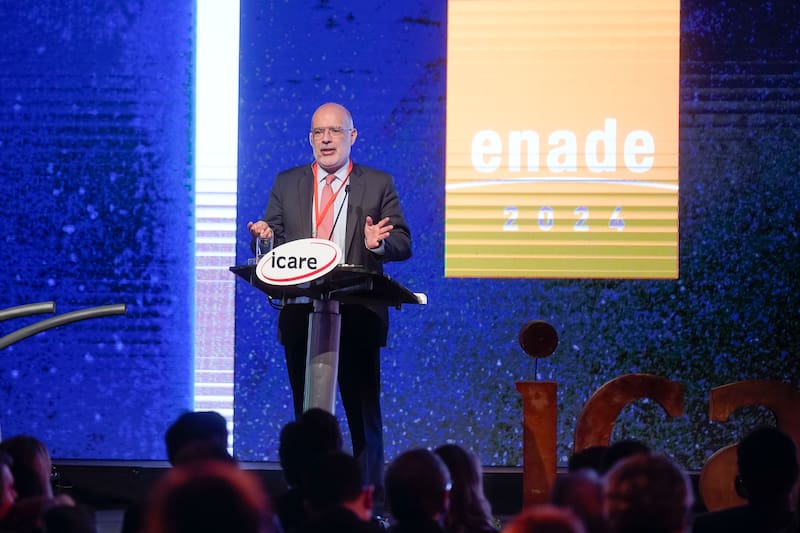 Al inicio de su presentación, Rodrigo Valdés mencionó que avanzaría más rápido en su exposición dado que las presentaciones anteriores utilizaron más tiempo que el que tenía previsto el programa de Enade 2024. Ante esto, el economista asoció este escenario con las consecuencias que, a su juicio, puede generar el sistema de reparto en pensiones.