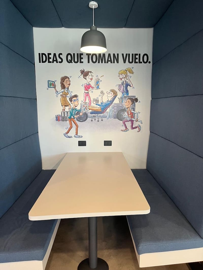 Si antes existían puestos de trabajo definidos, una sala de reuniones y una recepción, en realidad “hoy los puestos asignados en su mayoría no existen, son puestos no asignados. Hay ciertos privados muy puntuales que en general son para un gerente de división, que además hace las reuniones ahí mismo. Y después existen cabinas telefónicas, quiet rooms, con sillas tipo puf, o en dos silloncitos con una mesa, cafeterías, salas de proyectos donde se juntan con mesas plegables, mesas movibles. La gente llega y dice: ´hoy quiero lograr esto, voy a trabajar en este lugar. Hoy quiero estar concentrado, me voy a esta otra parte´“.