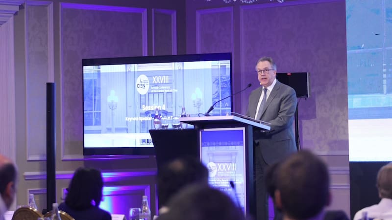 “Las expectativas de inflación están muy bien ancladas, no se han producido cuellos de botella generalizados en la cadena de suministro, los mercados laborales no generan presiones inflacionarias y el crecimiento salarial se ha moderado. Por consiguiente, preveo que los efectos de los aranceles sobre la inflación se manifestarán durante el resto de este año y la primera mitad del próximo. Posteriormente, la inflación debería volver a la senda del 2 % en 2027″, dijo en su exposición en Chile.