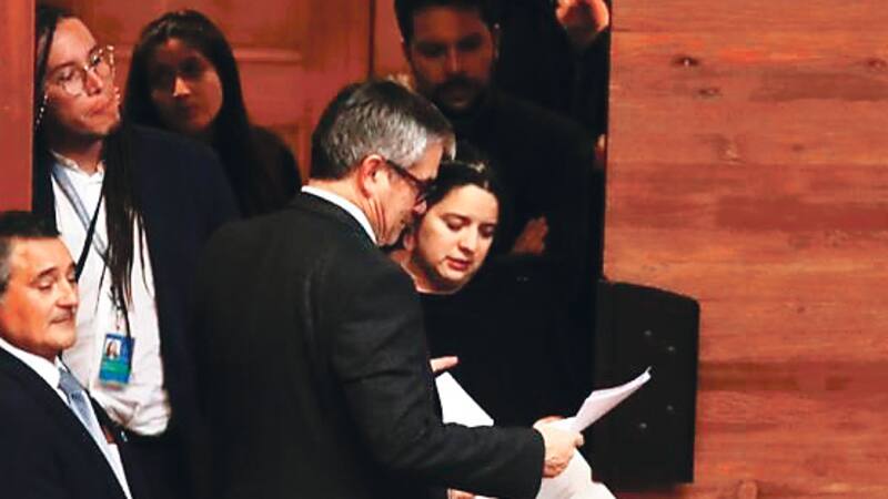 Quienes estuvieron con la directora cuentan que el diálogo se hizo por la vía de WhatsApp o bien el ministro se acercaba a la puerta de la sala de la Cámara para conversar con Martínez, quien transitó entre las puertas del hemiciclo y la sala que tiene la Secretaría General de la Presidencia a un costado de la sala de la Cámara. También entregaba las respuestas a través de tarjetas. De esa manera, la directora iba respondiendo preguntas que surgían en la sala.