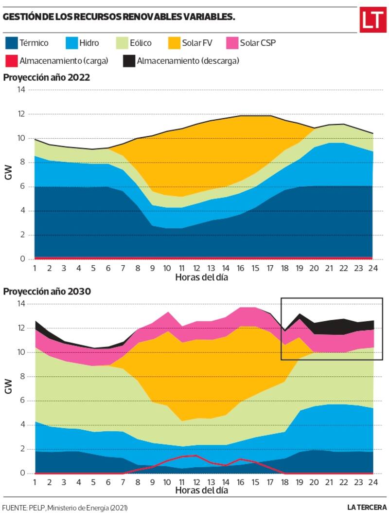 “Mientras se mantenga la congestión de la red, los excesos de energía de los parques fotovoltaicos podrán almacenarse para ser inyectados en la noche, pero con suerte por cinco o seis horas, por ejemplo de 18:00 horas a 23:00 horas. ¿Y qué se hace con la demanda desde ahí hasta las 7:00 horas? Eso es lo que hay que resolver y es lo que abastecen hoy las centrales carboneras y de ciclo combinado. La mejor solución es que esas termo sean reemplazadas por tecnologías como la concentración solar de potencia, porque la capacidad de almacenamiento de una planta como Cerro Dominador es de más de 17 horas. Por costo, hoy es imposible abastecer toda la energía requerida en la noche solo con baterías”, insiste Chávez.P