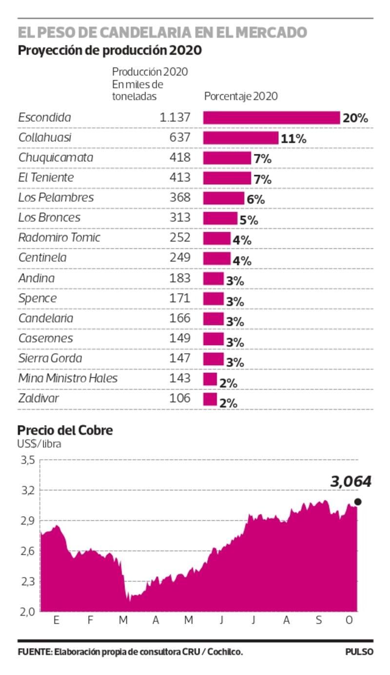 “Candelaria tiene un menor impacto a nivel global. La proyección de producción de cobre para este año sumaba alrededor de 170 mil toneladas de cobre fino, lo que representa aproximadamente 3% de la producción nacional”, dijo el consultor senior de CRU Group, Francisco Acuña.