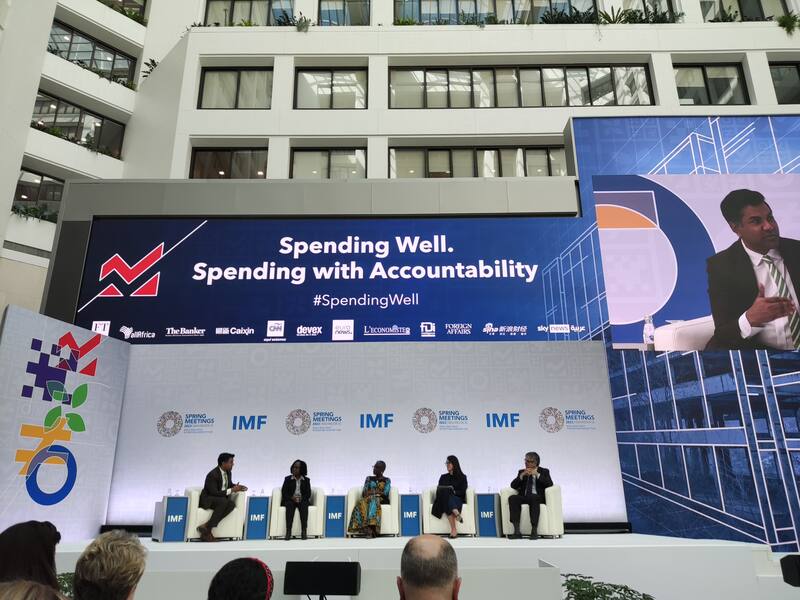 En el evento “Gastar bien. Gastar con responsabilidad”, desarrollado en el edificio principal del FMI en Washington DC, el titular de Hacienda compartió escenario con la subdirectora Gerente del FMI, Antoinette Monsio Sayeh; la Contralora General de la República de Kenya, Nancy Gathungu; y la ministra de Finanzas y Economía de Albania, Delina Ibrahimaj.