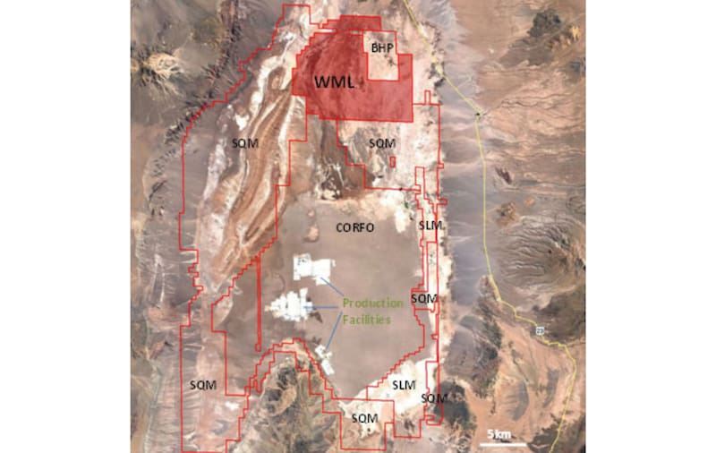 La canadiense Wealth Minerals cuenta con tres proyectos en Chile. Uno de ellos, el proyecto Yapuckuta, dispone de concesiones en el salar que abarcan un total de 46 mil hectáreas, titularidad que tiene la empresa en el salar desde hace más de una década, afirma. Esa información es detallada por la firma en su página web, donde afirman que sus instalaciones comprenden un tercio de la producción mundial de litio.
