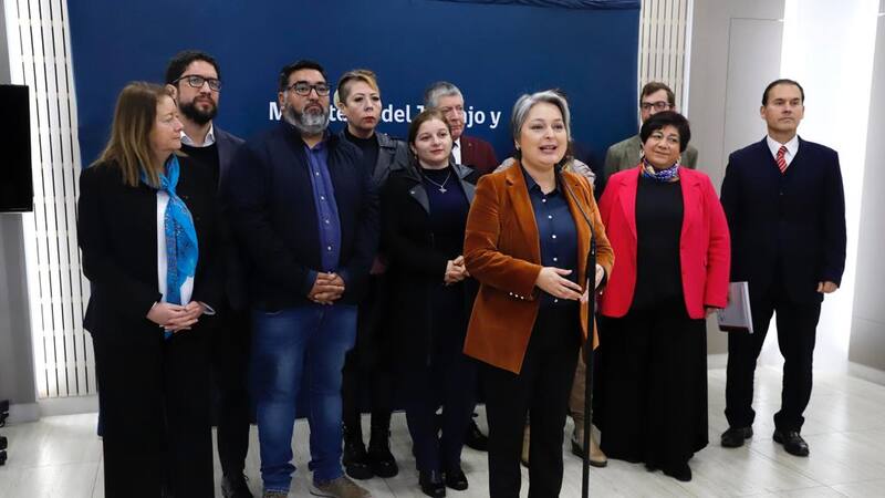 La instancia fue encabezada por la ministra Jeannette Jara y el subsecretario del Trabajo, Giorgio Boccardo, quienes acompañados por las subsecretarias de Hacienda, de Economía y de Educación, Heidi Berner, Javiera Petersen y Alejandra Arratia, respectivamente, integran la parte del Gobierno.