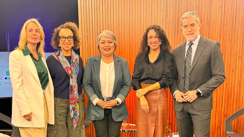 El conversatorio contó con la participación de figuras clave como Jeannette Jara, Ministra del Trabajo y Previsión Social; Daniela Pardakhti, Directora de Gestión de Personas y Calidad de Vida en Scotiabank; Pamela Parra, Gerenta de Personas y Cultura en Essbio; y Francisca Jünemann, Presidenta Ejecutiva de la Fundación ChileMujeres.