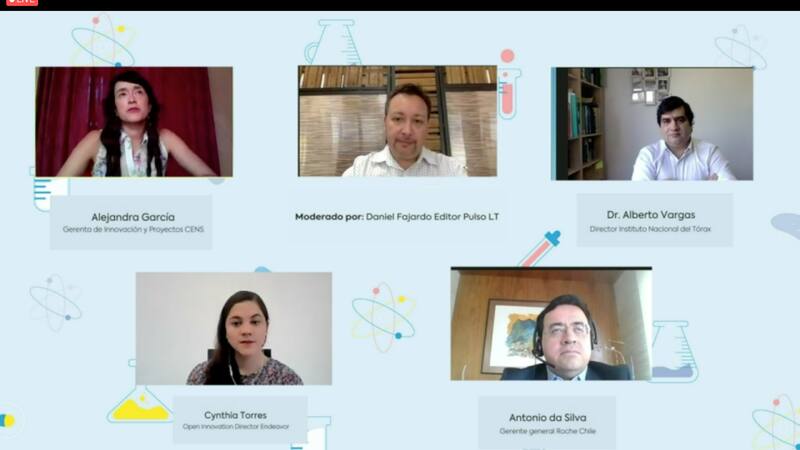 La instancia contó con un panel de expertos conformado por Alberto Vargas, director del Instituto Nacional del Tórax; Alejandra García, gerenta de innovación y proyectos CENS; Cynthia Torres, open innovation director Endeavor; y Antonio da Silva, gerente general Roche Chile.
