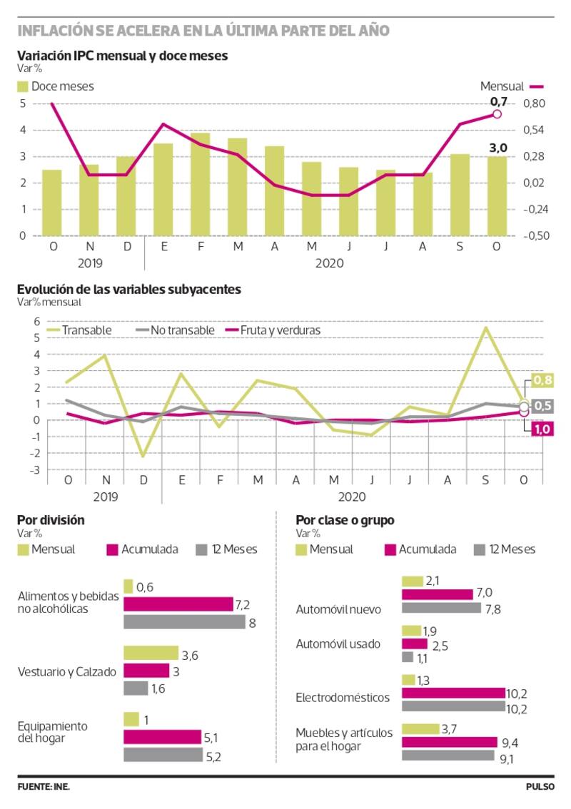 Así, a octubre los precios acumularon un alza de 2,8%, de ese total, casi la mitad se explica por el resultado de ambos meses.