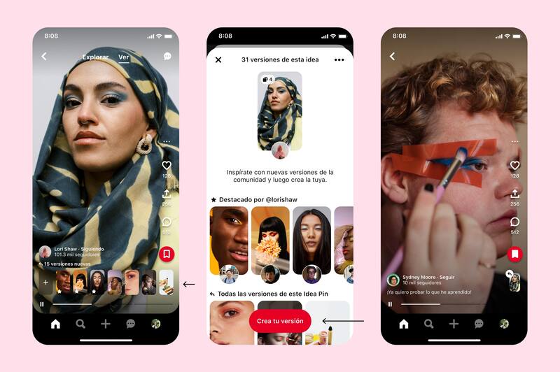 -Pinterest es inspiración. No vienes a nosotros porque quieres comprar algo en particular, como en las otras plataformas. Si quieres comprar una silla, quieres ver muchas opciones y cómo se ven en diferentes contextos, forma o colores. Así puedes darte cuenta de que quieres una silla en particular. Entonces, como plataforma buscamos ofrecer esa experiencia, conectar la inspiración con la realización.