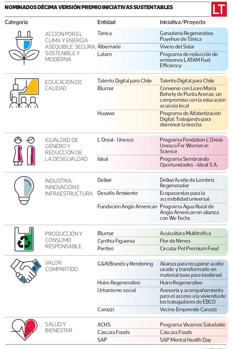 Desde empresas relacionadas al transporte de pasajeros, hasta compañías de alta tecnología. Desde multinacionales, hasta emprendimientos locales, pasando por fundaciones, ONG y entidades públicas. En total son 21 proyectos en marcha los que fueron nominados para la décima versión de los Premios Iniciativas Sustentables, del HUB Sustentabilidad de Pulso, cuyos ganadores finales se darán a conocer en los próximos días.