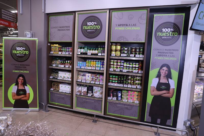 En las góndolas se ofrecen productos de 200 emprendimientos distintos. Unimarc destaca alta participación femenina, además de regional que congrega el 76% del total de empresas. La mayor participación se la llevan Coquimbo, Magallanes y Los Lagos.