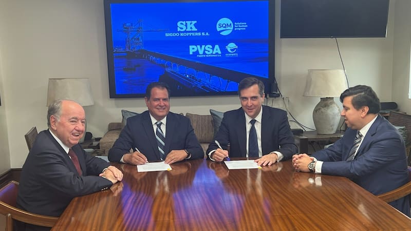 Puerto Ventanas firma contrato de servicios portuarios con SQM para descarga y almacenamiento de insumos para baterías de litio en Mejillones