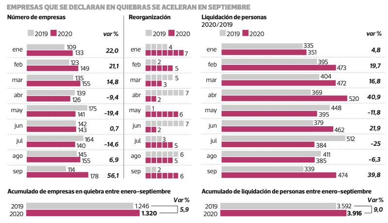 Por Carlos AlonsoQuiebras de empresas aumentan 56% en septiembre, el mes con mayores registros