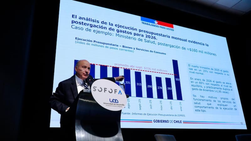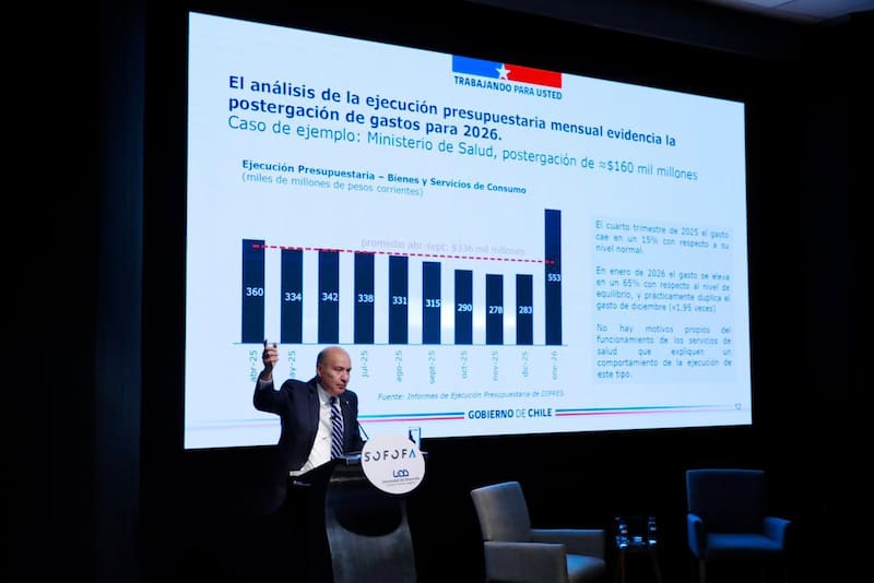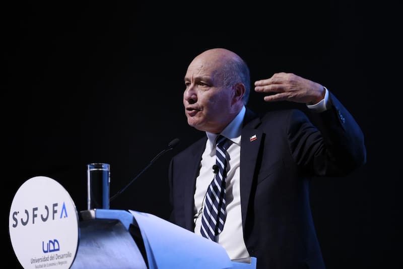 Luego de su mensaje de optimismo, el secretario de Estado ocupó gran parte de su exposición para reiterar las críticas a la gestión en materia fiscal del gobierno del expresidente Gabriel Boric.