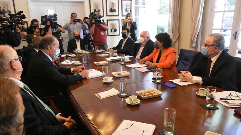 En la cita -que forma parte de una ronda de conversaciones que tendrá lugar, además, con Boric, Kast y Sichel- estuvieron presentes cinco de las seis ramas que integran el gran empresariado, además del timonel de la multigremial, Juan Sutil. Asistieron Antonio Errázuriz, presidente de la Cámara Chilena de la Construcción (CChC); Cristián Allendes, presidente de la Sociedad Nacional de Agricultura (SNA); José Manuel Mena, presidente de la Asociación de Bancos e Instituciones Financieras (Abif), y Richard von Appen, presidente de la Sociedad de Fomento Fabril (Sofofa). En representación de la Sociedad Nacional de Minería (Sonami) estuvo el vicepresidente Francisco Costabal y la Cámara Nacional de Comercio (CNC) no concurrió.