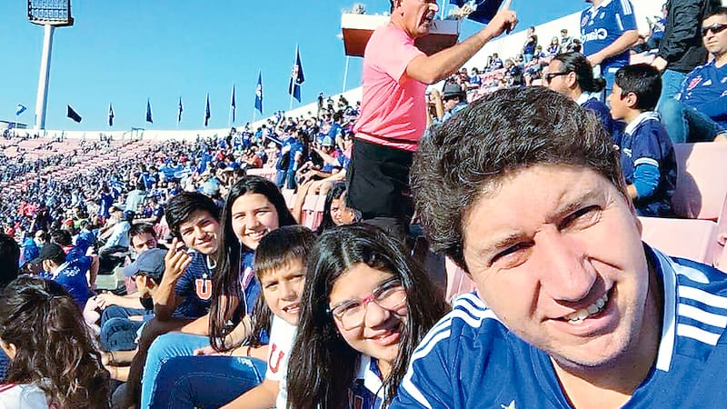 Ese fanatismo se lo traspasó a sus hijos, con los que asistía regularmente al estadio hasta antes de la pandemia (en la foto, con cuatro de sus cinco hijos). En el Estadio Nacional era común verlo, con la camiseta de su equipo, en la Tribuna Andes.